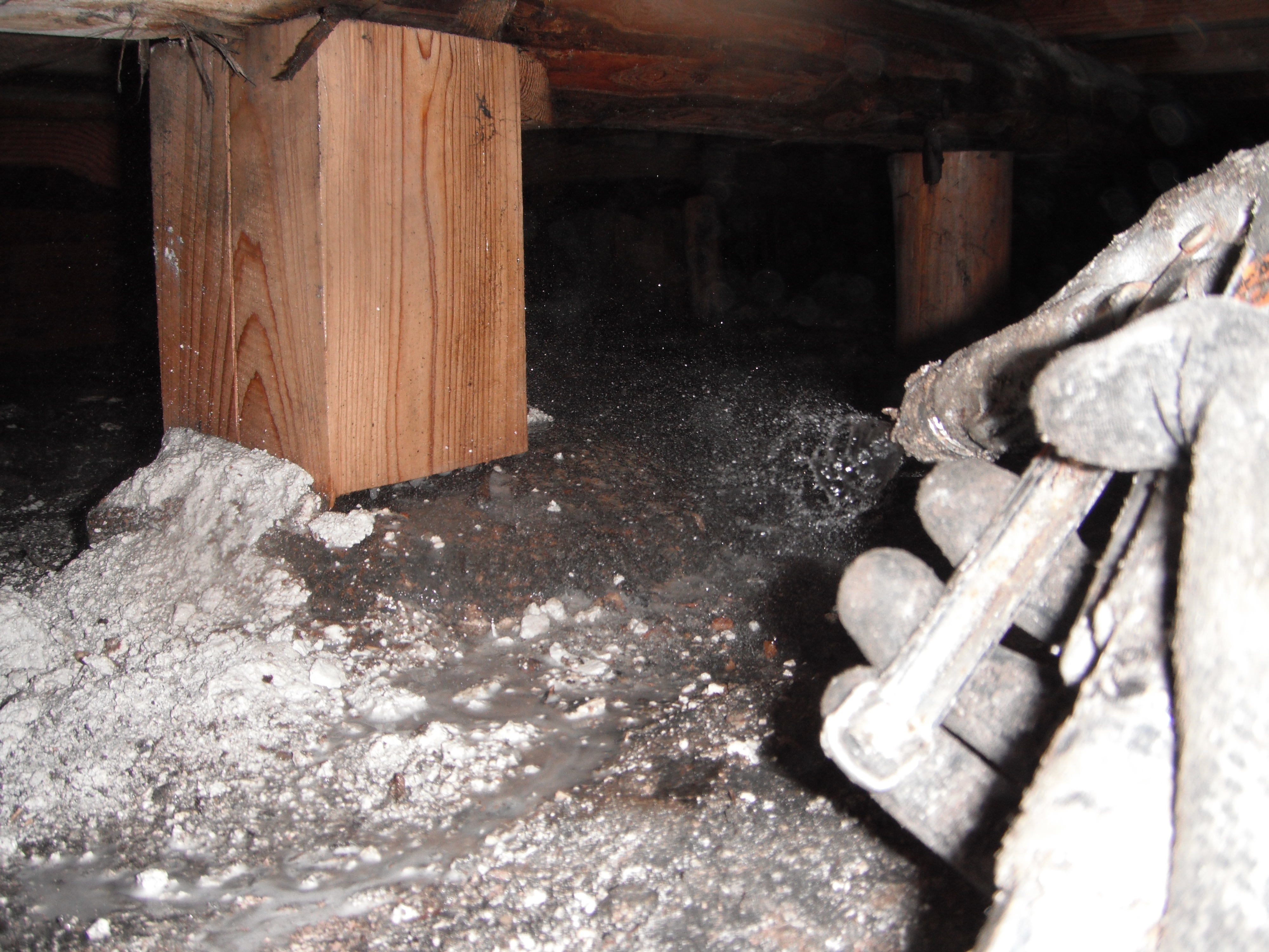 床下に潜っての作業