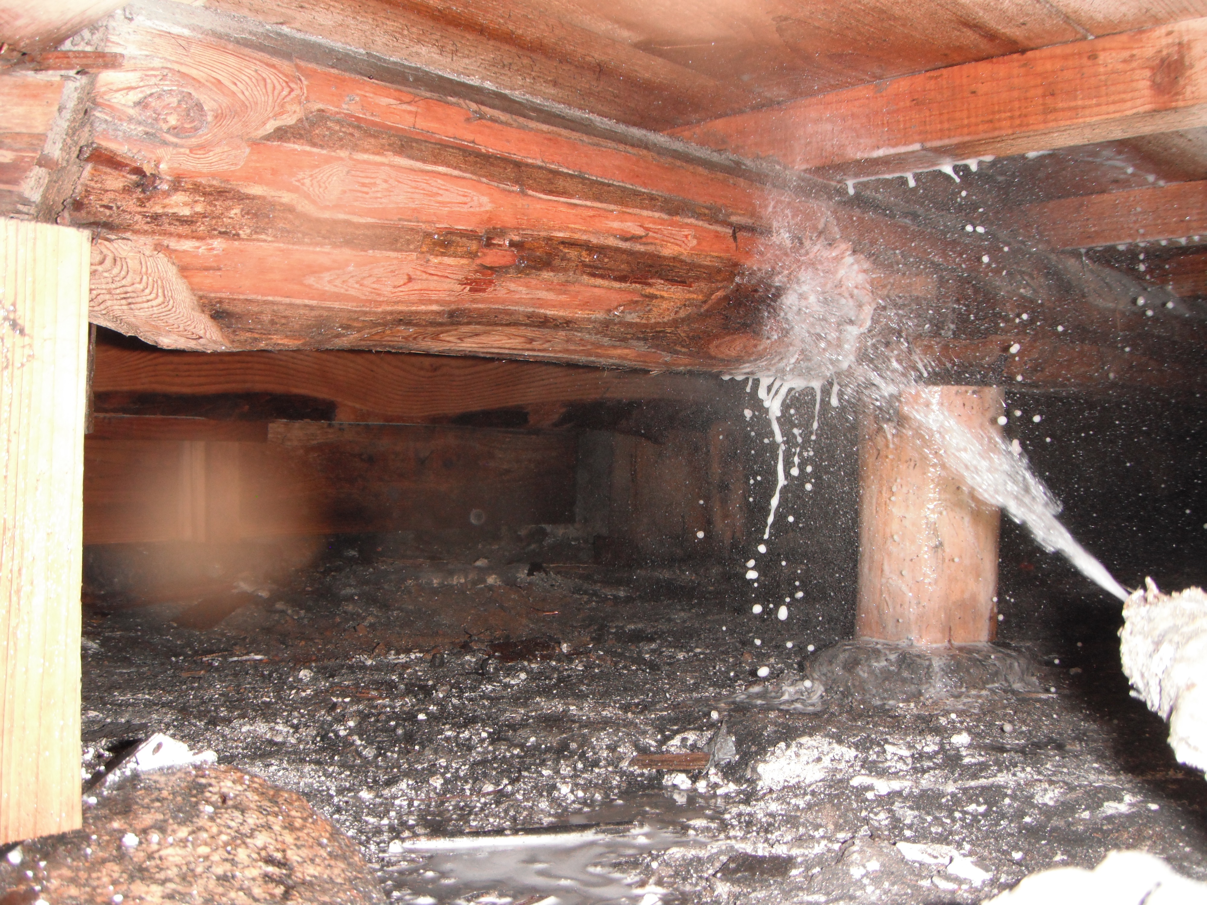 ⑨床下から基礎の木部に薬剤を散布します