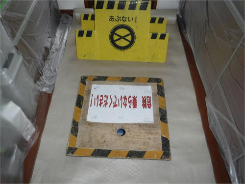 ③床下の侵入口の付近からホコリが舞い上がるため、その付近を養生します